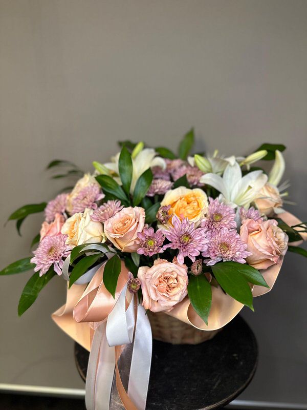 | Состав: | Маттиола, Розы, Хризантемы |